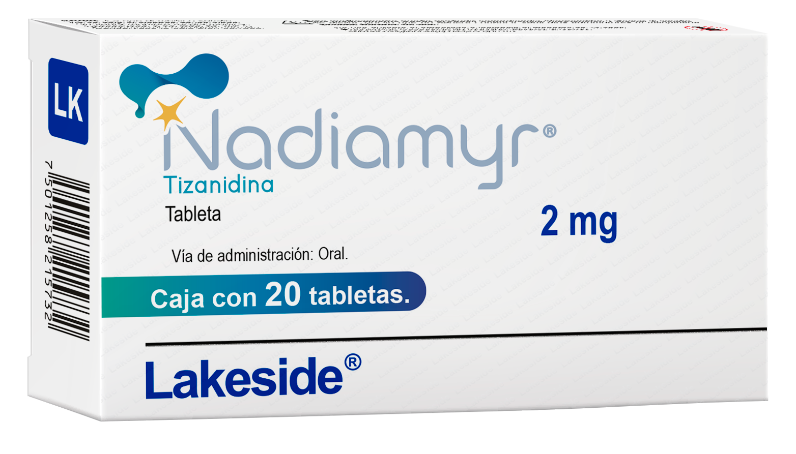 Nadiamyr 2mg con 20 tab Tizanidina Corta Caducidad